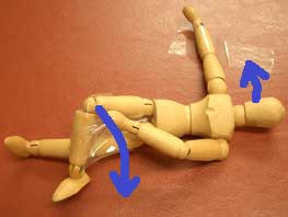 - 息をはきながら、両ひざを片側のほうに倒す。
